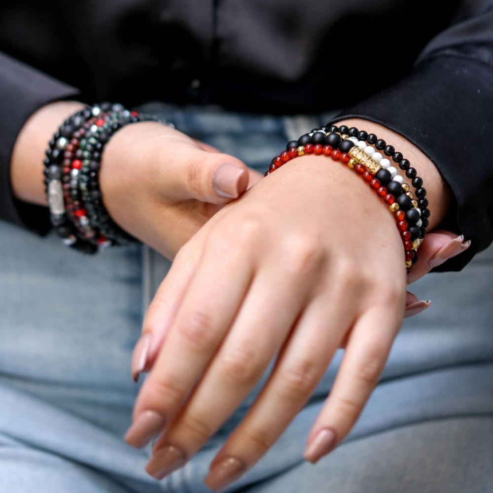 Armband van het merk Rebel & Rose. De armband heeft een hoogwaardige elastische stretch koord, met 4mm van Rode Agaat, RVS ion-gold plated.