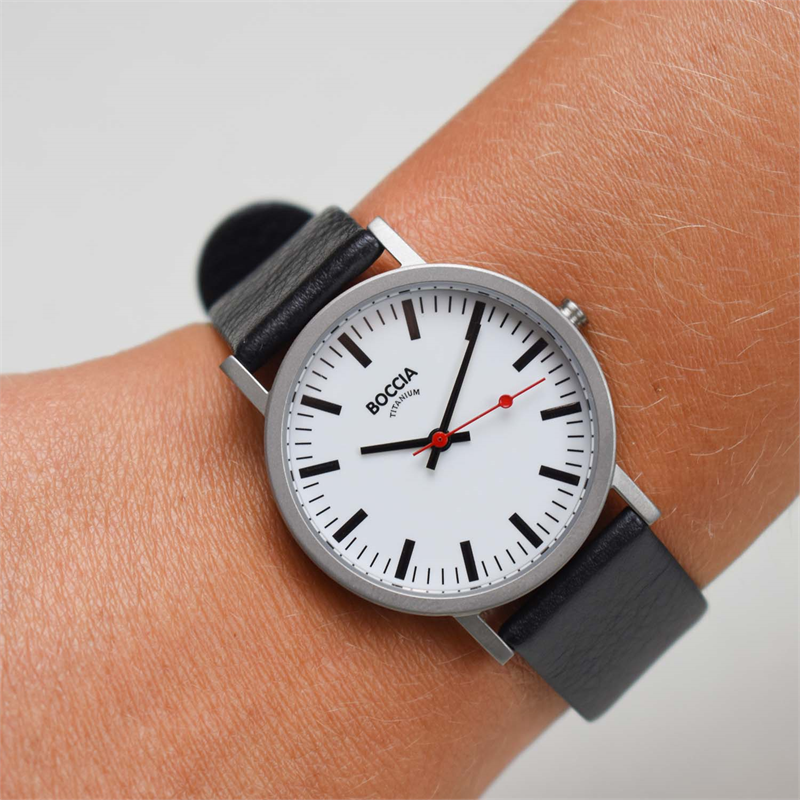Dit herenhorloge van Boccia Titanium heeft een quartz uurwerk. De titanium horlogekast met een matte bezel zorgt voor een klassieke look en de witte wijzerplaat met rode seconde wijzer maakt het horloge uniek. Het horloge heeft een ronde kast met een diameter van 35mm, een mineraalglas, en is 3ATM. Combineer dit prachtige exemplaar met de andere sieraden van Boccia Titanium voor een complete look. Aan de titanium kast zit een zwarte leren band.