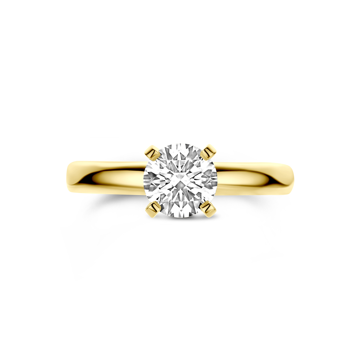 14k Geelgouden ring uitgevoerd met lab grown diamant. Het totale diamantgewicht is 1.00ct. Dit artikel wordt geleverd met certificaat van de diamant.