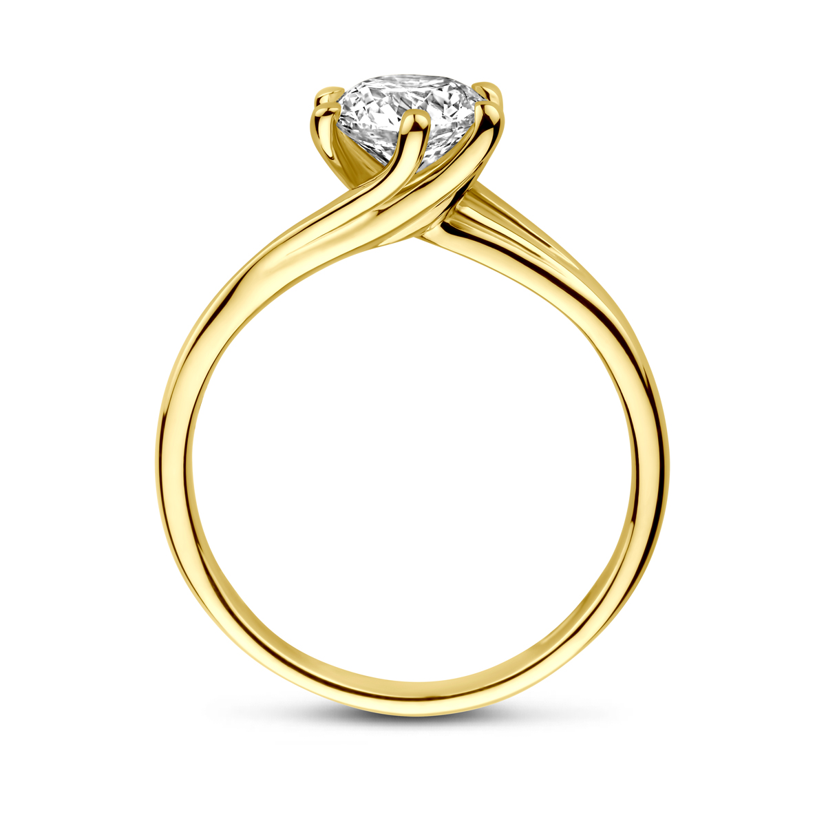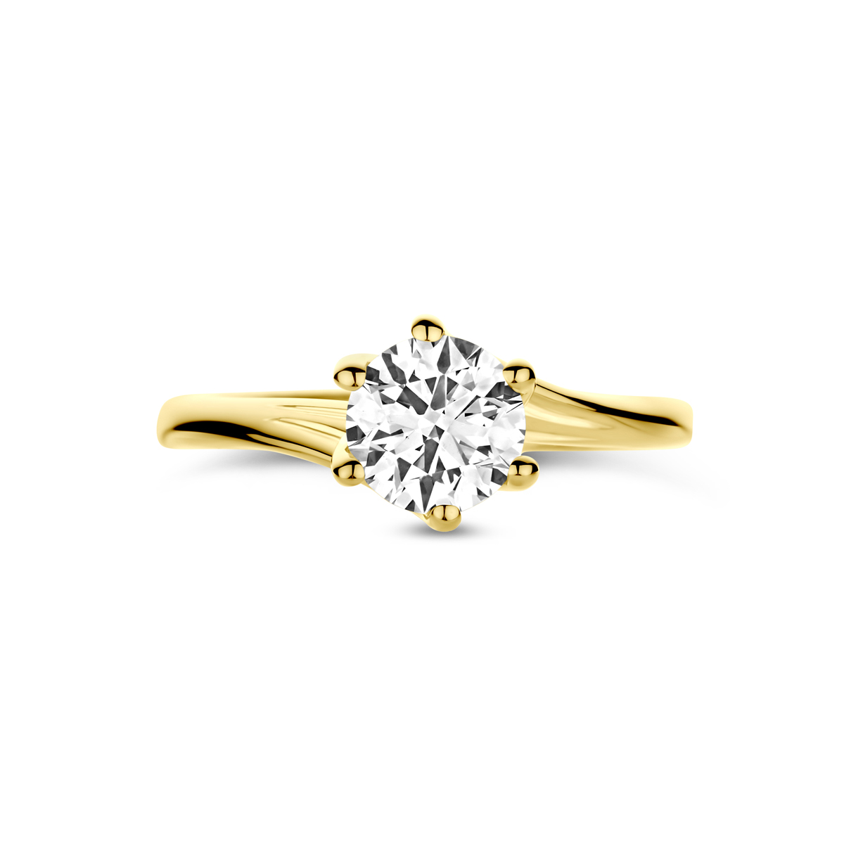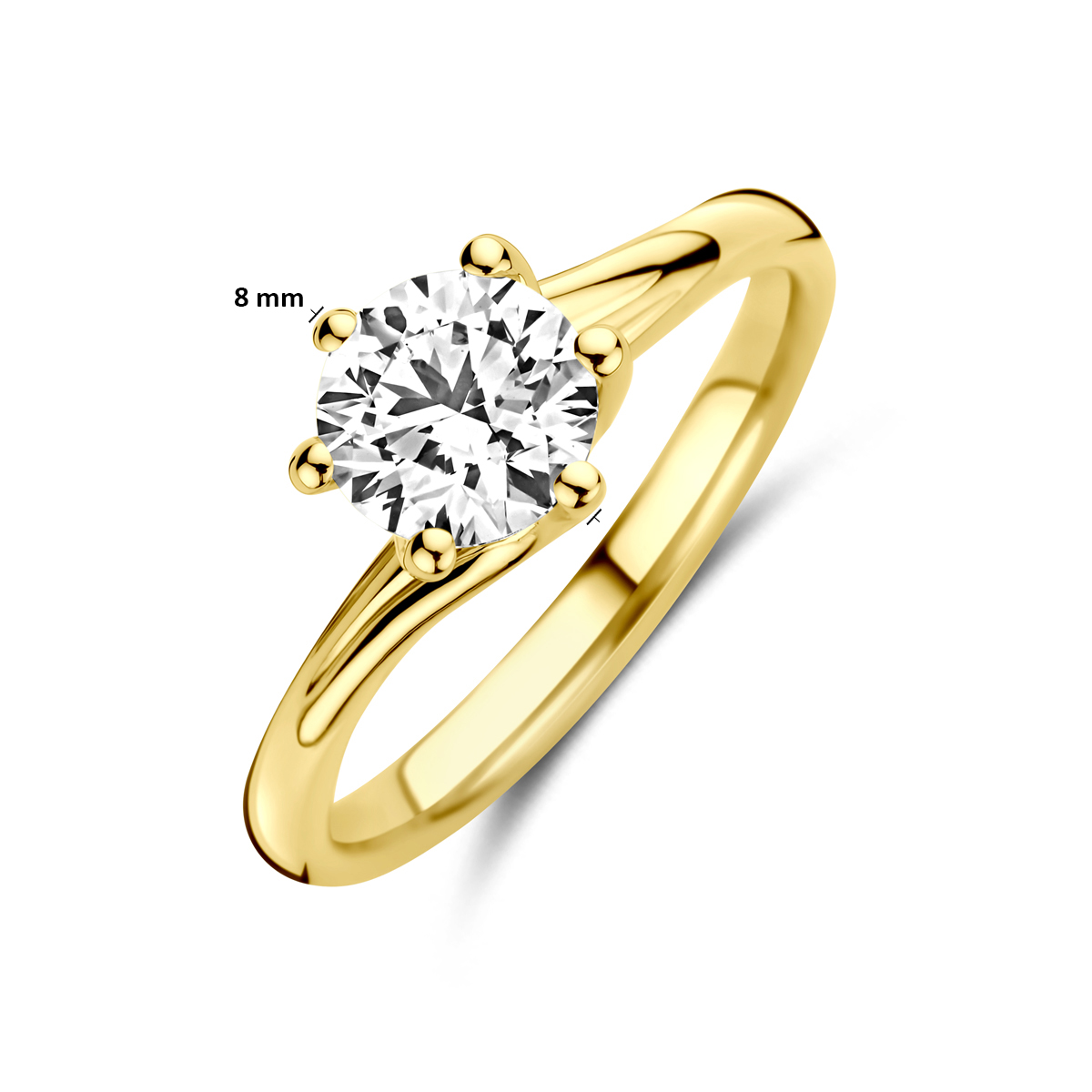 14k Geelgouden ring uitgevoerd met lab grown diamant. De ring heeft een breedte van 8mm. Het diamantgewicht is 1.00ct. Lab grown diamanten zijn diamanten die ontstaan in een laboratorium. Onder extreem hoge druk en temperatuur wordt het natuurlijk ontstaansproces nagebootst met als eindresultaat een diamant met dezelfde chemische eigenschappen maar met een andere oorsprong.