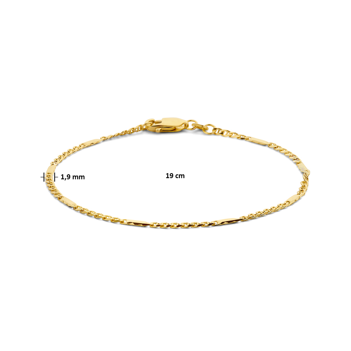 14k Geelgouden valkenoog armband uitgevoerd met een karabijn sluiting. De armband heeft een een schakelbreedte van 1.9mm.
