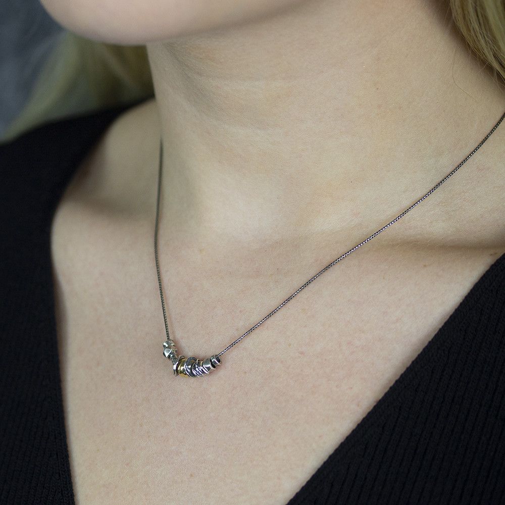 Fijn collier met zilveren geoxideerde en goldfilled kralen