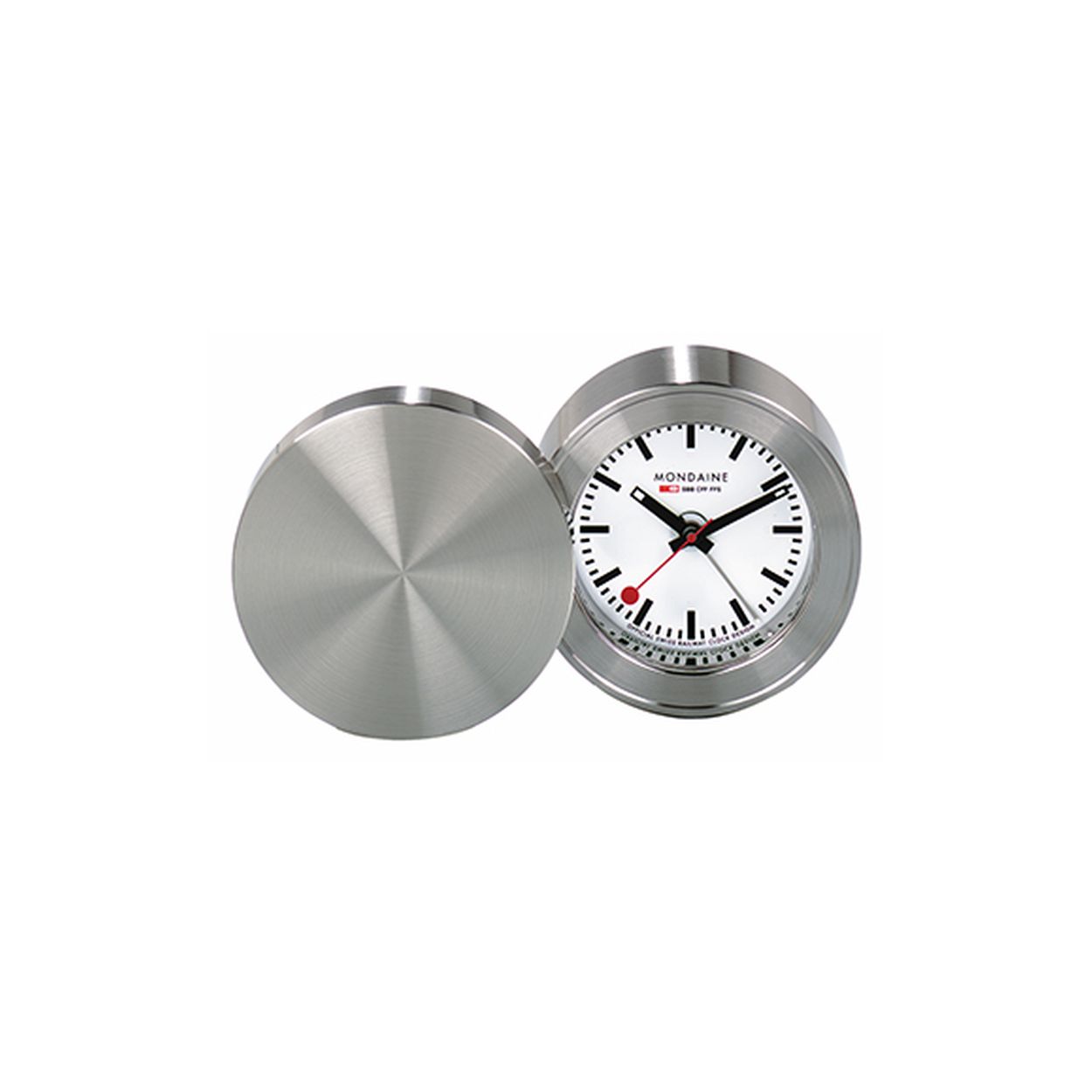 Mondaine MSM.64410 Travel Alarm Clock Dit design klokje van Mondaine (SBB Travel Alarm Clock MSM.64410) is een stijlvol klokje uit de Official Swiss Railways Watch serie. Daarnaast heeft dit klokje een ronde metalen kast en een doorsnede van 50mm. Bovendien kan het klokjegebruikt worden als bureauklokje of voor op reis. De Mondaine SBB Travel Alarm Clock (MSM.64410) is voorzien van alarm en lumibrite puntjes op de uiteinden van de uur,- en de minuutwijzer. Het merk The Official Swiss Railways Watch is gebaseerd op de officiële stationsklok van de Zwitserse spoorwegen. De horlogelijn is 30 jaar geleden opgezet onder het merk Mondaine. Het legendarisch ontwerp wordt als stationsklok gebruikt door de SBB, de Swiss Federal Railways. In 1944 creëerde een Zwitsers ingenieur, ontwerper en medewerker van de federale Zwitserse spoorwegen (Hans Hilfiker) de stationsklok. In 1986 maakte het de sprong van het station platform naar de pols. De Mondaine-SBB-collectie is op zijn beurt een gerespecteerd ontwerp op zichzelf geworden en tegenwoordig wordt het beschouwd als één van de "10 Classic Swiss Watch Designs". Ten slotte is het een echte designklassieker door de unieke wijzerplaat en de wereldberoemde rode secondewijzer met bolletje. Herkenbaar uit duizenden! Specificaties - Alarm - Lumibritepunten op de uur,-en minuutwijzer- Mineraalglas - Ronde kastvorm doorsnede 50mm - Witte wijzerplaat van de originele stationsklok - Werkt op batterijen (mee geleverd)