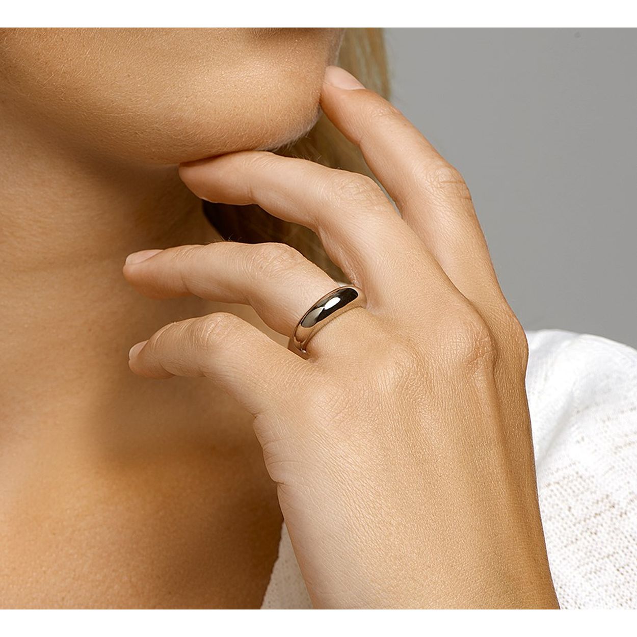 14k Witgouden ring met daarin een kern van 925 zilver. De ring heeft een breedte van 6mm.
