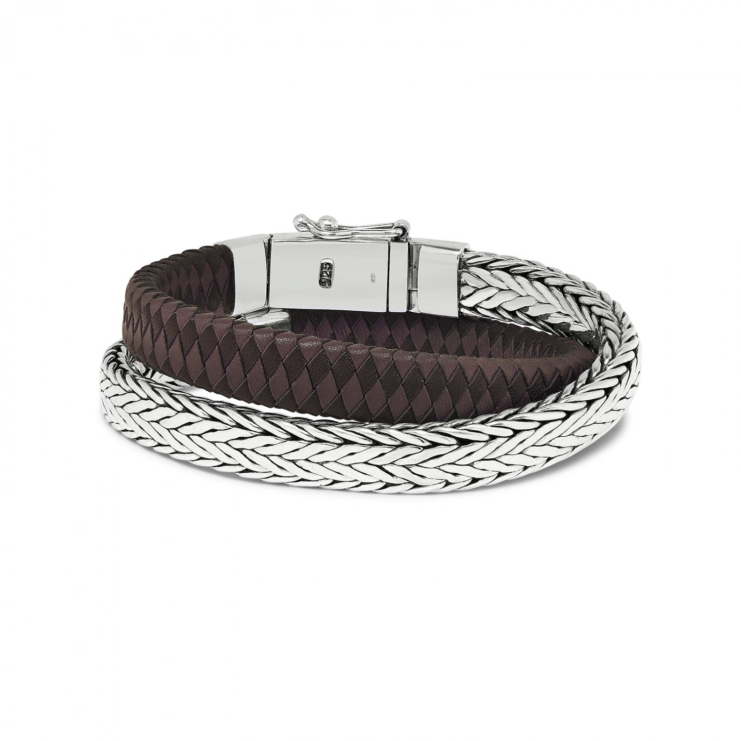 Zilveren Silk armband model 362 bruin/zwart 21cm dubbel