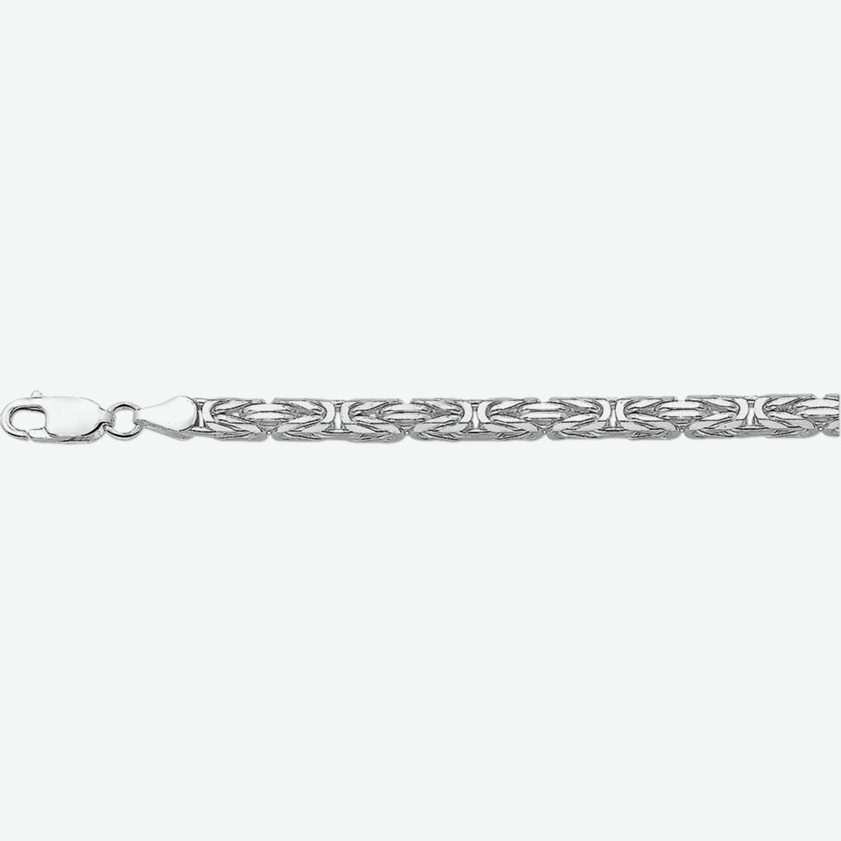 Zilveren lengte artikel met konings schakel. De schakelbreedte is 4.0mm.